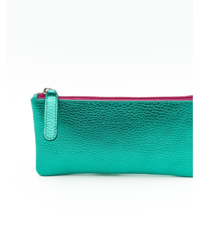 La sua silhouette sottile lo rende facilmente maneggevole, perfetto da inserire in borsa o tenere sulla scrivania. Il design minimal è valorizzato dalla chiusura con zip a contrasto nel nostro iconico colore fucsia, presente in tutte le varianti, arricchita da un pratico tiralampo in pelle abbinata che dona continuità e armonia al look dell’astuccio. L’interno sfoderato mantiene leggerezza e autenticità, per un accessorio essenziale e giocoso.