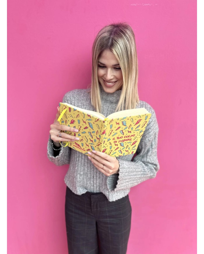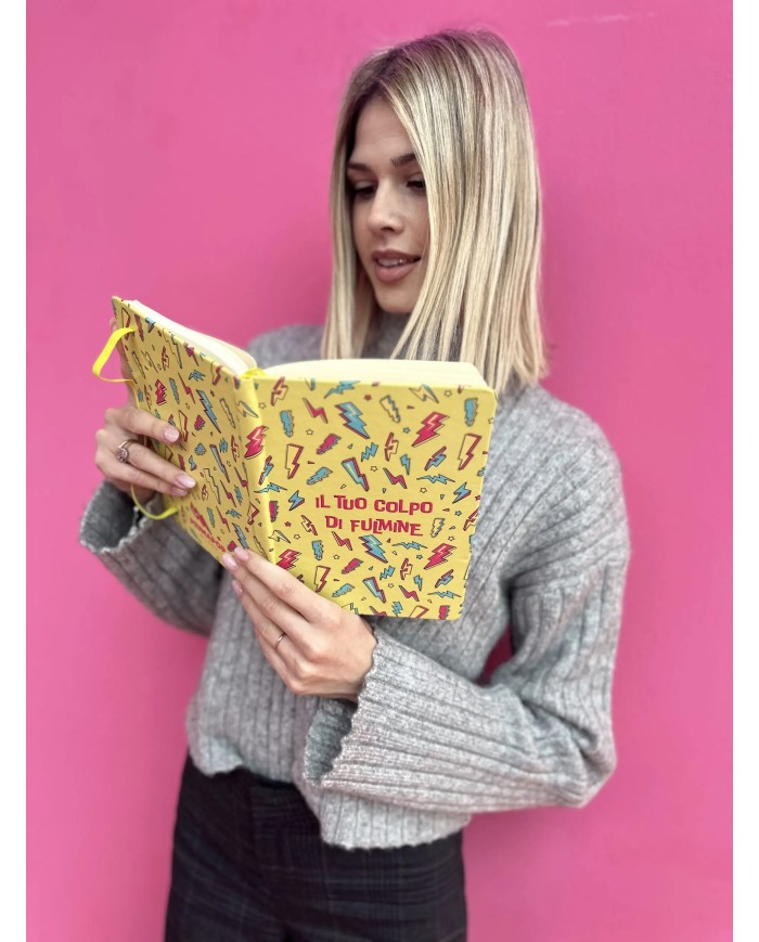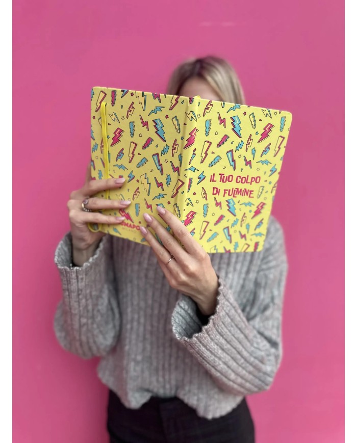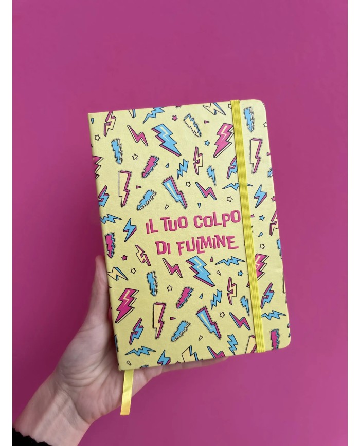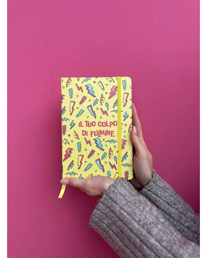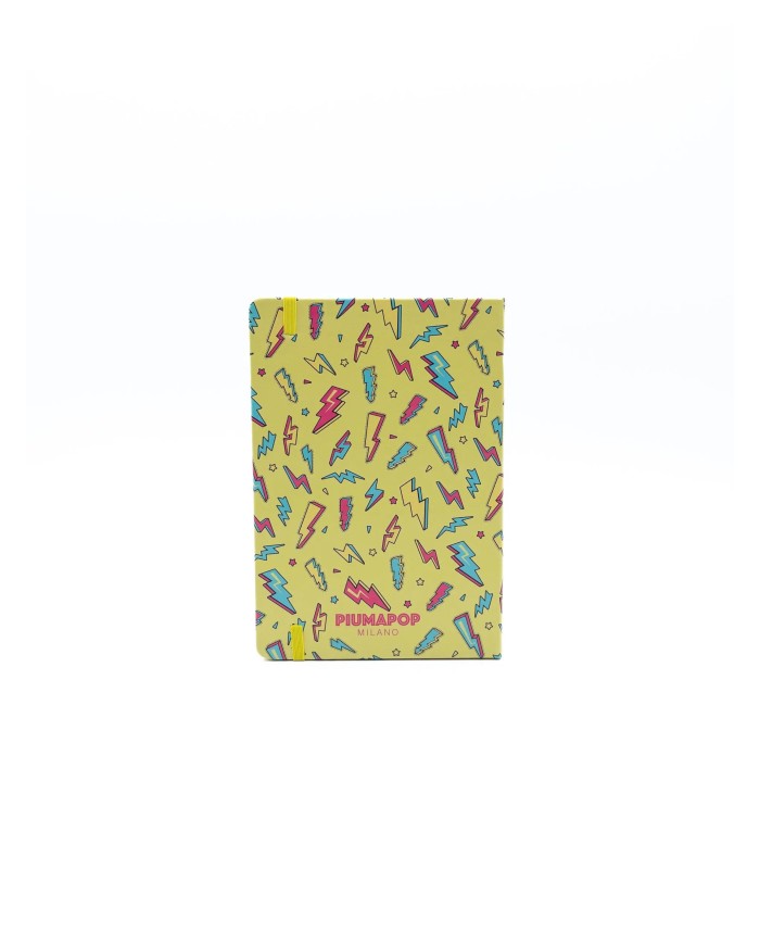 Copertina Rigida, angoli arrotondati, chiusura con elastico e segnalibro giallo, carta 80mg